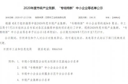 根據(jù)《關(guān)于組織推薦申報(bào)2020年度市級產(chǎn)業(yè)集群、“專精特新”中小企業(yè)等的通知》要求,市工信局組織專家對各區(qū)縣推薦申報(bào)的項(xiàng)目進(jìn)行了評審。我公司通過2020年度市級“專精特新”中小企業(yè)評審。
